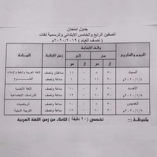 عاجل.جداول امتحانات أخر العام الدراسى 2019 المرحله الابتدائيه والمرحله الاعداديه محافظه الدقهلية.